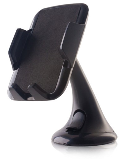 Długość ramienia 10cm. Telefon wkłada się do głowicy po wysunięciu jednej z łapek. Łapki są wyłożone miękką gumą. W ten sposób telefon umieszczony w uchwycie nie porysuje się. Uchwyt jest przeznaczony do montowania na przedniej szybie samochodu. Powierzchnię, do której montujemy uchwyt należy dokładnie przeczyścić przed instalacją. Blokada zaciskająca przyssawkę na szybie musi być w położeniu luzu przed zamontowaniem na szybie. Po dociśnięciu do płaskiej powierzchni należy zablokować uchwyt. Odczepienie uchwyt jest równie proste - wystarczy zwolnić blokadę i pociągnąć za języczek wystający poza obręcz przyssawki. Uchwyt jest wykonany z trwałego plastiku.