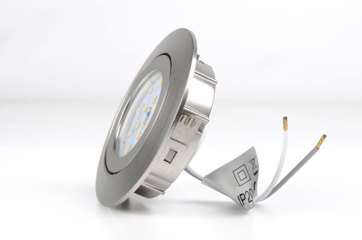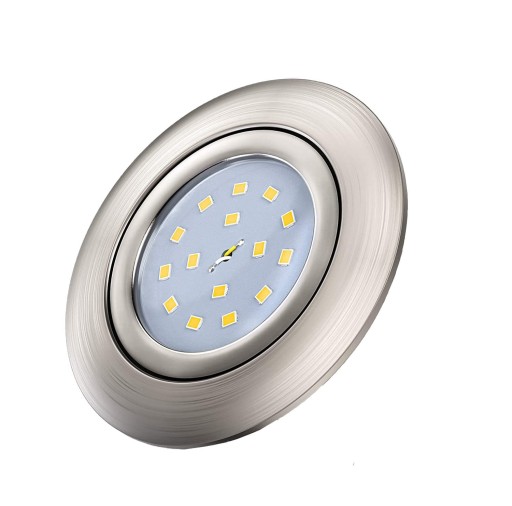 Oprawka wpustowa - Downlight - w lampie zastosowana wysokiej jakość moduł LED o mocy 4,8W i barwie światła ciepłej 3000k dzięki któremu głębokość montażowa zmniejszyła się do zaledwie 3 cm. Oprawka w kolorze nikiel mat.