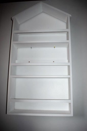WITAM . SPRZEDAM WISZĄCĄ PÓŁKĘ NA KSIĄŻKIW KSZTAŁCIE DOMKU. PÓŁKA ZOSTAŁA WYKONANA RĘCZNIE Z LITEGO DREWNA SOSNOWEGO I POMALOWANA RÓWIEŻ RĘCZNIE FARBĄ EKOLOGICZNĄ. PÓŁKA NIE POSIADA PŁYTY TYLNEJ,MOŻLIWOŚĆ DOROBIENIA KOSZT 50 ZŁ. PÓŁKA NIE POSIADA KOŁKÓW ROZPOROWYCH, LISTWA MONTAŻOWA POSIADA OTWORY O SREDNICY 8 MM NALEŻY KUPIĆ KÓŁKI ROZPOROWE ODPOWIEDNIE DO ŚCIANY NA KTÓREJ BĘDZIE ZAMONTOWANA PÓŁKA