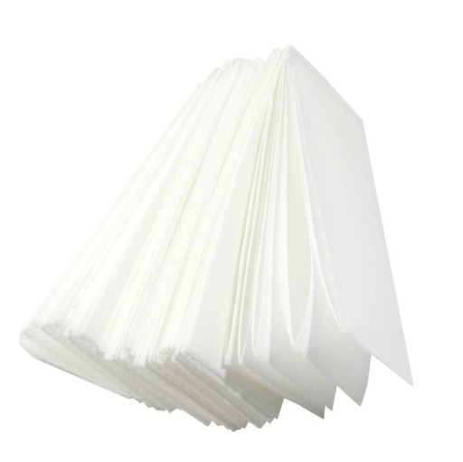 Paski do depilacji woskiem wykonane są z wysokiej jakości bardzo wytrzymałej fizeliny. Gwarantują wysoką skuteczność ponieważ wosk idealnie się do nich przykleja, dzięki czemu depilacja przebiega szybko, równomiernie i bardzo dokładnie. Jest to zdecydowanie jedna z lepszych metod usuwania owłosienia, ponieważ jest korzystna dla skóry, nie powoduje zbyt wielu podrażnień, a także często stosowana z czasem osłabia włoski, przez co rośnie ich coraz mniej. Efekt gładkiej skóry po depilacji woskiem utrzymuje się nawet do 3 tygodni co jest niemożliwe do osiągnięcia przy metodzie depilacji maszynką. Jeden pasek może być użyty kilka razy, podczas depilacji. Opakowanie 100sztuk.