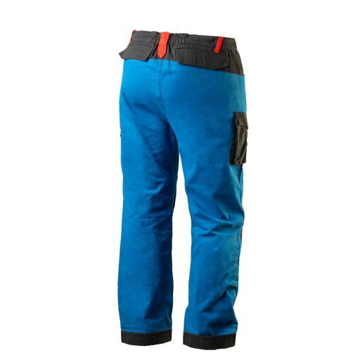 Spodnie robocze NEO z serii HD+ wykonane są z wysokiej jakości tkaniny bawełnianej. Profilowane kolana z kieszeniami na nakolanniki ochronne oraz pojemne i wytrzymałe kieszenie znacznie podnoszą komfort pracy. Elastyczne elementy umieszczone w pasie pozwalają na lepsze dopasowanie rozmiaru. Potrójne szwy wewnętrzne zwiększają odporność na rozerwania. Spodnie wyróżnia odważne połączenie kolorów, a nowoczesny miejski krój pozwala na użytkowanie produktu również poza pracą. Gwarantem jakości jest certyfikat europejski oraz wykonanie zgodne z normą EN ISO 13688:2013. Marka NEO spełnia oczekiwania profesjonalistów.