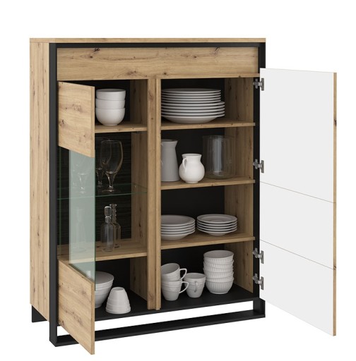 Witryna 2-drzwiowa, częściowo przeszklona QUANT 6 została wyposażona w 6 półek oraz zewnętrzne oświetlenie LED.
