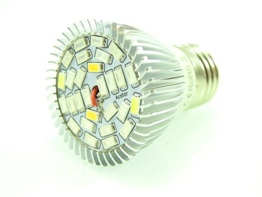 - Ilość diód w żarówce: 15 czerwone, 7 niebieskie, 2 białe zimne, 2 białe ciepłe, 1 IR, 1 UV