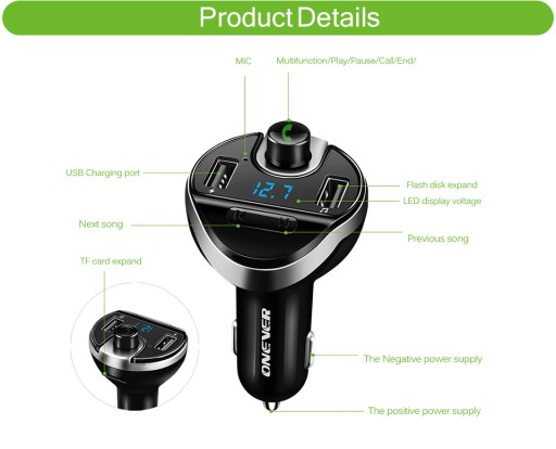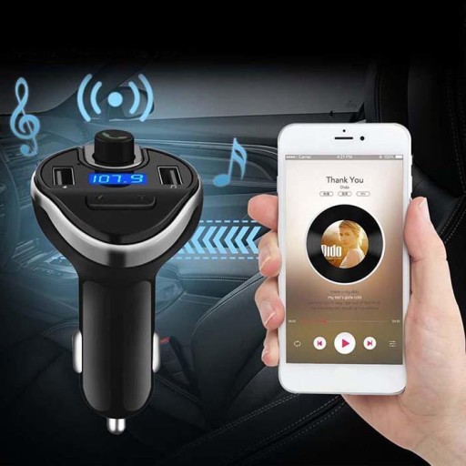 Możesz ładować telefon , tablet - ten transmiter służy również jako ładowarka samochodowa .