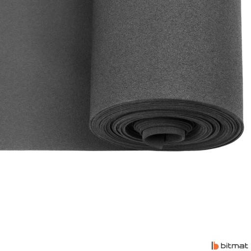 Mata wygłuszająca K3bk Bitmat - pianka izolacyjna gumowa bez kleju o strukturze komórek zamkniętych, posiada wysokie właściwości akustyczne oraz izolacyjne.