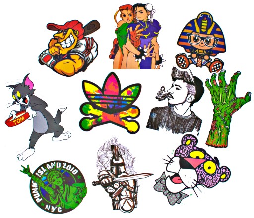 W skład zestawu wchodzi 10 sztuk naklejek w różnych rozmiarach i kształtach.