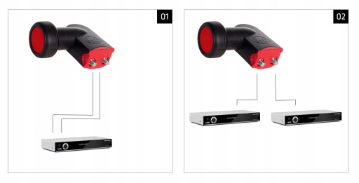 Konwerter satelitarny Premium LNB typu twin posiada w jednej obudowie połączone dwa pełno zakresowe konwertery.