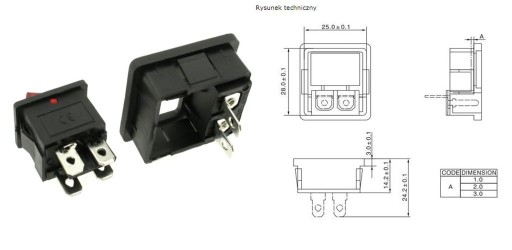 Gniazdo zasilające AC ósemka do obudowy na zatrzask z przełącznikiem