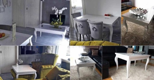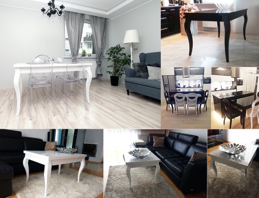 - blat stołu wykonany z płyty MDF AKRYL WYSOKI POŁYSK - bardzo ładny akryl o idealnym lustrzanym połysku, efekt jak na zdjęciach.