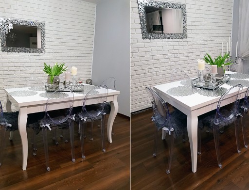 Prosty, nowoczesny a zarazem elegancki stół LUMINA w wysokim połysku. Dzięki odświeżonym nogom w stylu Ludwikowskim pasuje do pomieszczeń tradycyjnych jak i super-nowoczesnych.