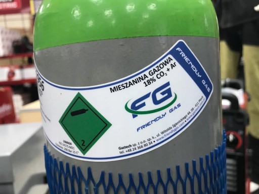 Buta o pojemności 8 L napełniona mieszanką argon (82 %) dwutlenek węgla (18 %) przeznaczona do użytkowania w spawalnictwie oraz przemyśle.