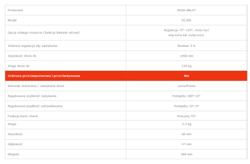 - Uwaga: Nie należy stosować do drzwi przeciwpożarowych i przeciwdymowych