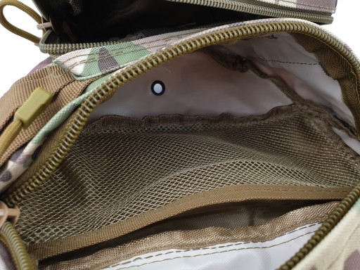 Wewnątrz frontowej kieszeni gumka na małe przedmioty oraz przegródka na dokumenty
