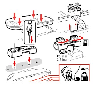 W zestawie dołączony komplet montażowy do bagażnika bazowego, klasyczny "ucho-U" do belek o szerokości do 60 mm szerokości