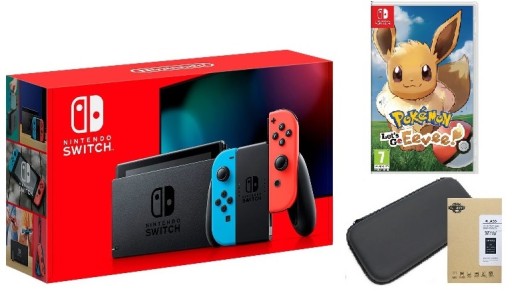 NINTENDO SWITCH 2019 НЕОН + ЧЕХОЛ + POKEMON LETS GO