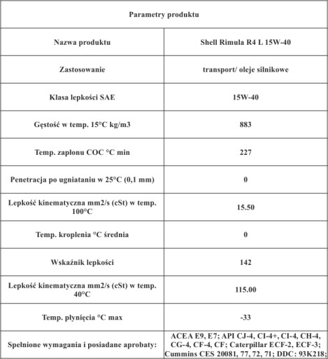 Olej Shell Rimula R4 L Aktywna Ochrona zawiera niskopopiołowe dodatki zabezpieczające pracujące w najostrzejszych warunkach elementy nowoczesnych silników niskoemisyjnych. Zabezpieczająca moc jest dodatkowo wzmocniona dzięki zastosowaniu wysokiej czystości oleju bazowego grupy drugiej, co dodatkowo zapewnia zwiększenie aktywności dodatków. Zapewnia to znacznie lepsze zabezpieczenia przed zużyciem, tworzeniem się osadów oraz zwiększoną odporność na rozkład termiczny*.