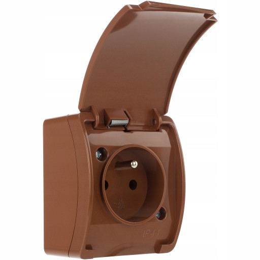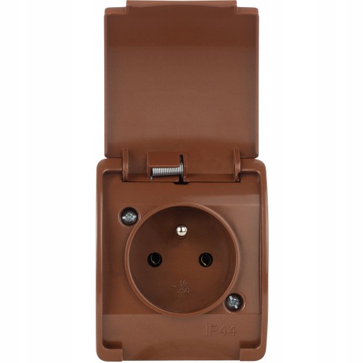 Gniazdo pojedyncze hermetyczne IP44 natynkowe brąz