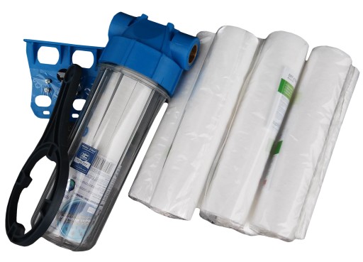 - skuteczny 10-calowy filtr wstępny z powłoką antybakteryjną i zapasem wkładów piankowych na trzy cztery (8 sztuk) - zatrzymuje zanieczyszczenia mechaniczne (piasek, muł, rdzę, osady)