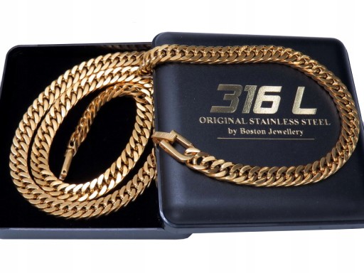 W tej ofercie prezentujemy wyjątkowo elegancki zestaw bransoletki i łańcuszka, który wykonany jest z NAJWYŻSZEJ JAKOŚCI STALI CHIRURGICZNEJ 316L platerowanej 18k ZŁOTEM. Jest ekskluzywny model z solidnym i wygodnym zapięciem klasy premium.