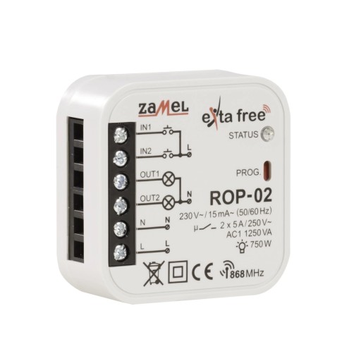 - Zamontować urządzenie ROP02 w puszce instalacyjnej.