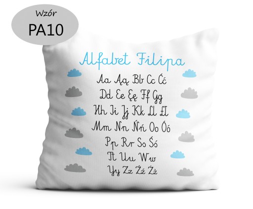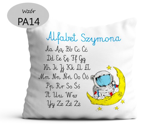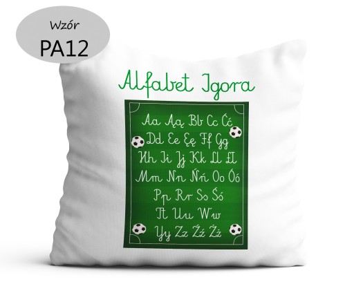 Poduszka dekoracyjna z alfabetem z imieniem dziecka.