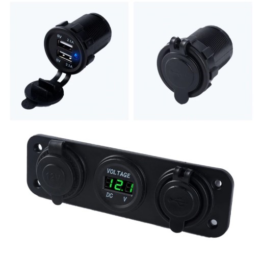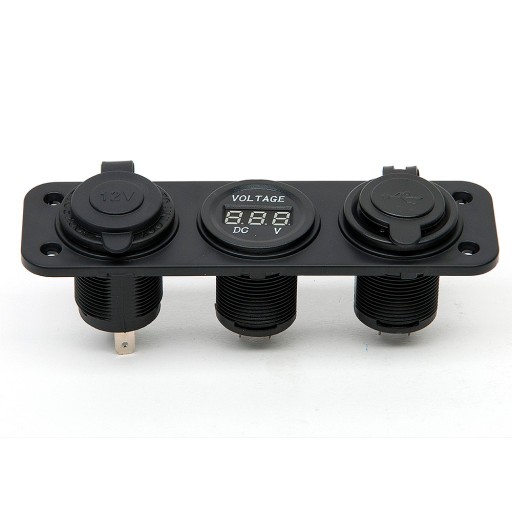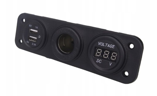 Panel składa się z gniazda zapalniczki, cyfrowego woltomierza wyświetlającego aktualny poziom napięcia akumulatora i dwóch portów USB szybkiego ładowania o napięciu 5V 3.1A (2.1A + 1A).