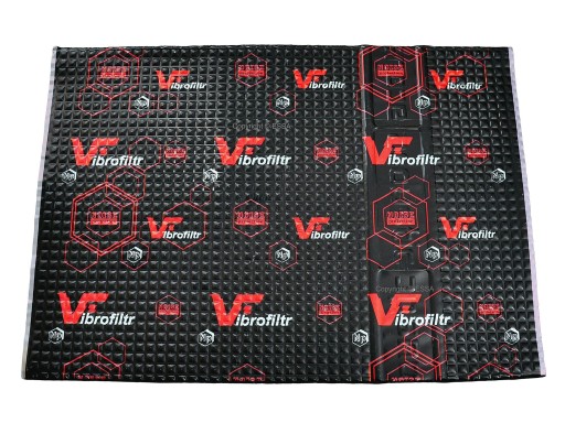 VIBROFILTR Noise Protection, to wielowarstwowy materiał redukujący drgania, hałas i wibracje, wykonany w postaci elastycznej samoprzylepnej maty na bazie zaawansowanego kompozytu polimerów, gumy butylowej (kauczuku butylowego) i aluminium. Z zewnętrznej strony znajduje się przetłaczana folia aluminiowa o grubości 100µm (0,1mm), która zapewnia mechaniczną ochronę warstwy polimerowo-butylowej oraz dodatkowo polepsza właściwości tłumiące. Materiały antywibracyjne Vibrofiltr są produkowane z wykorzystaniem technologii i sprzętu niemieckiej firmy „Baumuller”. Produkty te posiadają właściwości antykorozyjne i uszczelniające, są nietoksyczne, bezwonne, wodoodporne, samogasnące, nie wchłaniają wilgoci i nie rozkładają się pod wpływem warunków atmosferycznych. Maty Vibrofiltr, swą jakością wykonania, skutecznością tłumienia drgań oraz komfortem montażu nie ustępują podobnym i często dużo droższym produktom najbardziej renomowanych marek. W każdej oferowanej grubości (1,5-4mm), maty Vibrofiltr posiadają wysoką wartość współczynnika stratności mechanicznej (0,25-0,60), który określa zdolność danego materiału do pochłaniania (absorpcji) drgań.
