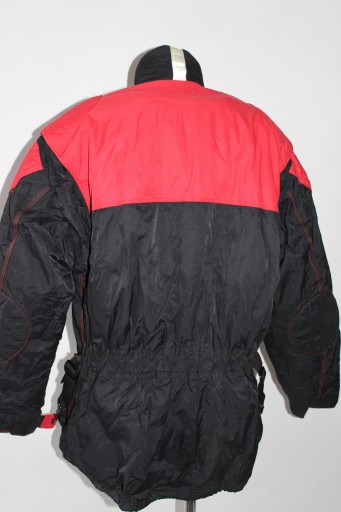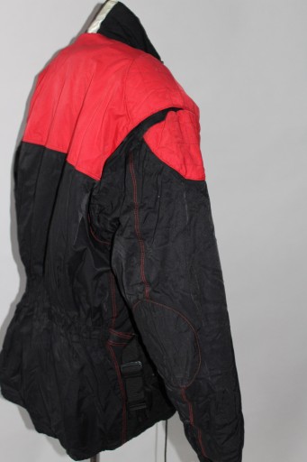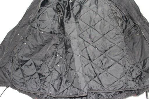 Tekstylna kurtka, zapinana na zamek, zatrzaski, wewnątrz podszewka, odpinana dopinka, 2 kieszonki, na zewnątrz 4 kieszenie, w pasie paseczki do regulacji, protektory łokcie i ramiona, u dołu rękawków zatrzaski- używana stan dobry- normalne ślady użytkowania.