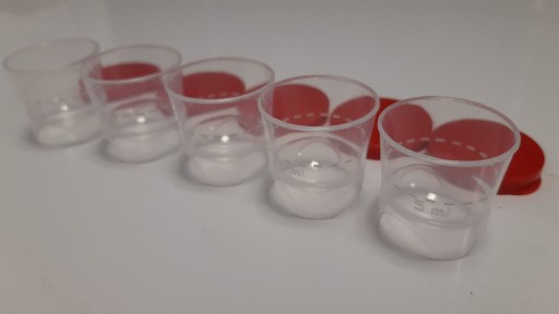 ✅ Kieliszki w połowie ( 5ml ) przedzielone wyraźną przerywaną linią.