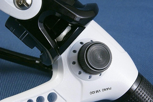 Na szpuli znajduje się plastikowy klips, służący do blokowania żyłki - zarówno dla zachowania jednakowej odległości rzutu, jak również w transporcie, aby żyłka nie odwijała się ze szpuli.