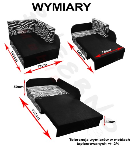 Dzięki zastosowaniu dwóch poduszek, wykonanych na wytrzymałej ramie drewnianej, łóżko można rozłożyć w 3 różnych długościach.