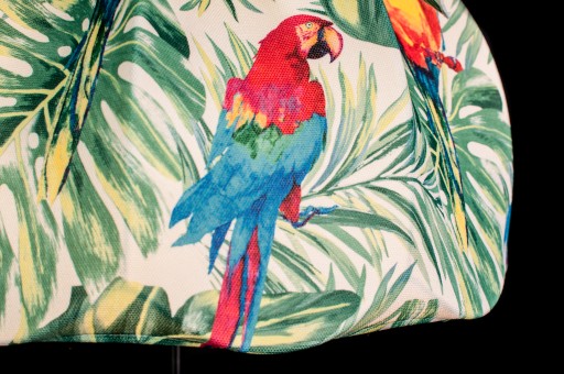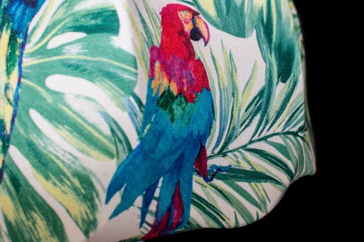 Prezentowany model to: papugi, monstera, liście, palmy.