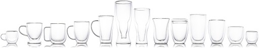 Szklanki posiadają podwójną ściankę - by dłużej utrzymywać temperaturę zarówno ciepłą, jak i zimną.