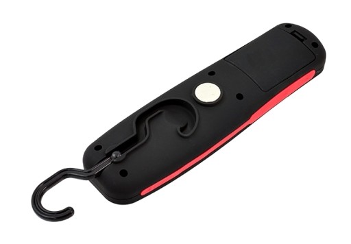 Wyposażona w silny uchwyt magnetyczny pozwalający na przytwierdzenie lampy do metalowych powierzchni oraz w poręczny wysuwany hak.