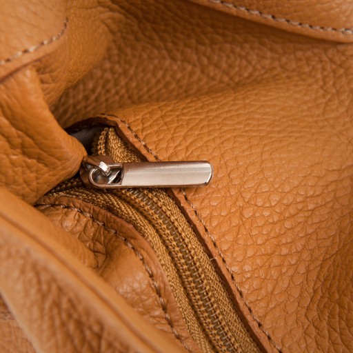 - Włoska skórzana torebka worek wykonana z wysokogatunkowej naturalnej miękkiej skóry.