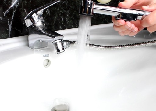 Zasada działania: Woda wypływa z kranu przez perlator dopiero po naciśnięciu przycisku słuchawki bidetowej przełącza się na bidet.