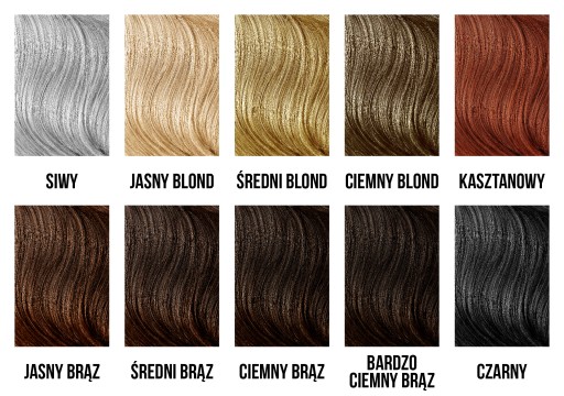 Wybierz jeden z 10 dostępnych kolorów najbardziej zbliżony do koloru Twoich włosów. Bogata paleta dostępnych odcieni sprawia, że uzyskanie naturalnie wyglądających gęstych włosów nie jest trudne. Pełna gama kolorów przedstawiona jest w dalszej części aukcji.