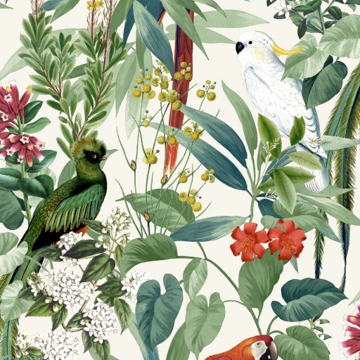 ОБОИ УЗОР ЛИСТЬЯ, ПТИЦЫ, ПОПУГАИ НА НЕПОЛЕВОМ