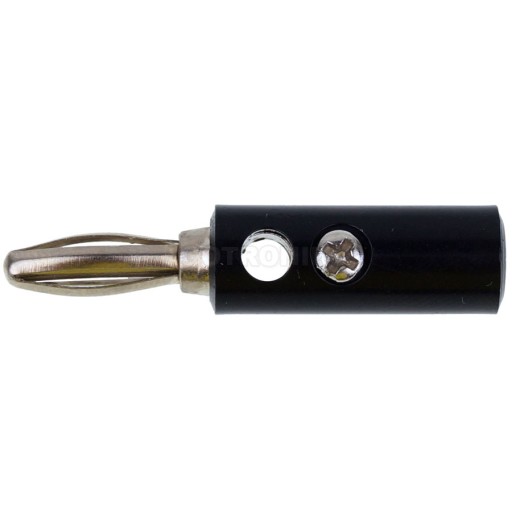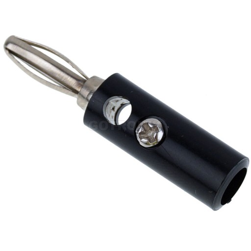 Wtyk bananowy 4mm do wykonywania przewodów połączeniowych. Wtyk banan posiada dodatkowe gniazdo 4mm do łączenia z innymi wtykami typu banan.