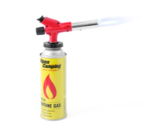 PALNIK NA KARTUSZE IK0011 Z AUTOMATYCZNYM ZAPALANIEM PIEZOELEKTRYCZNYM TEMPERATURA PŁOMIENIA 1700˚C + 4X KARTUSZE GAZOWE