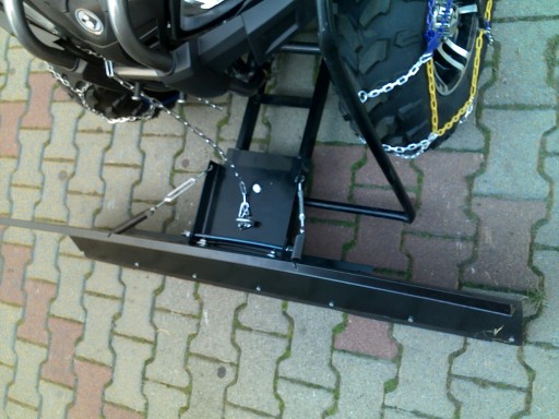 Sprzedam funkcjonalny pług 2 ramienny 126 cm na konstrukcji ruchomej do QUADA BARTON MIKILON , reaguje na nierówności np. kamień, trawa, nierówna kostka , jest ruchomy na sprężynach. Pług odgarnia śnieg w lewą , prawą stronę i na wprost .Posiada gumę oraz rączkę do unoszenia ręcznego , wyposażony w łańcuszek do ręcznego transportu..Rączka może być montowana z lewej lub prawej strony .Mocowanie jest bardzo proste , tak jak i niezależne od konstrukcji pługa, mechanizmu uchylnego, mocowanie montuje się na stałe do pojazdu( za pomocą śrub montażowych które są w zestawie ) np. quada , ciągniczka, kosiarki , różnych pojazdów mechanicznych.Pług ma bardzo solidną i stabilną konstrukcję i również nadaje się pod wyciągarkę elektryczną. Kolor CZARNY.