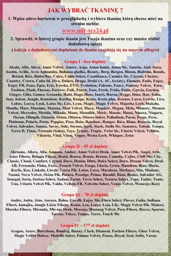 W formularzu kupna należy podać wzór wybranej tapicerki oraz wybarwienia drewna !