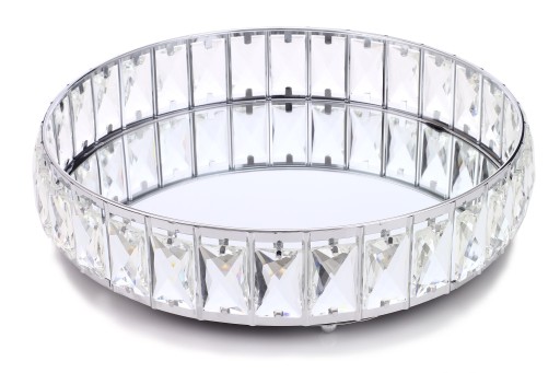 Taca okrągła - lustrzana podstawka dekoracyjna z kryształowym ozdobnym rantem DEC-003-CR