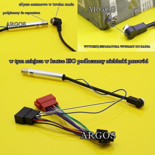 Zaś niebieski kabelek dostarczający zasilanie do separatora wpinamy w niebieski kabelek w kostce ISO. Dzięki temu separator będzie się włączał tylko gdy radioodtwarzacz jest włączony, a nie przez 24 h na dobę. Chociaż pobiera on znikome napięcie, nie ma sensu żeby był włączony cały czas.