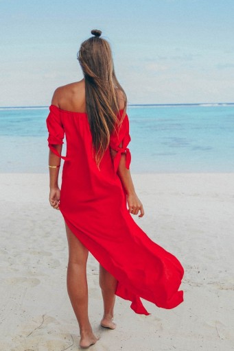 ZWIEWNA MAXI SUKIENKA Z ODKRYTYMI RAMIONAMI!