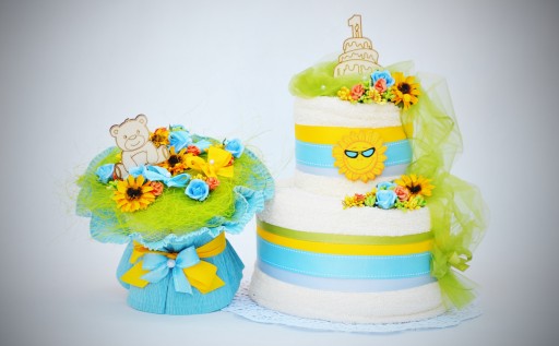 Zapraszamy do zakupu oryginalnego, praktycznego, eleganckiego prezentu jakim jest tort i bukiet z ręczników. To doskonały prezent na chrzciny, narodziny dziecka lub urodzinki. Doskonały, jako prezent zamiast kwiatów. Po jego rozwinięciu obdarowani będą się cieszyć miękkimi, grubymi i chłonnymi ręcznikami.