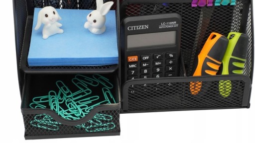 Jego największą zaletą jest zapewnienie porządku. Chaos na biurku to częsta przyczyna opóźnień. Dzięki wielokomorowemu przybornikowi odnajdzie się spokój, a długopisy, nożyczki, czy ołówki będą zawsze w jednym miejscu.