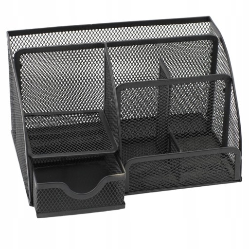 - przybornik na biurko, wykonany z metalowej siateczki powlekanej lakierem