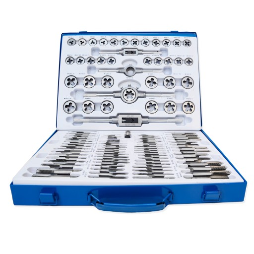Narzynki i gwintowniki wykonane są z wysokiej jakości materiału. Zestaw służy do naprawy połączeń gwintowych różnego kalibru. Zestaw stosuje się miedzu innymi w:
