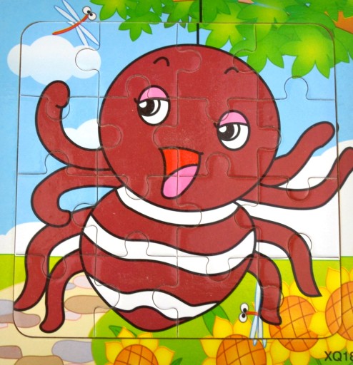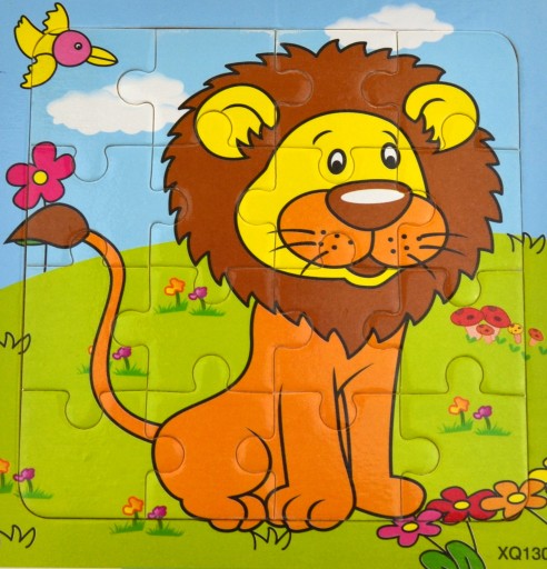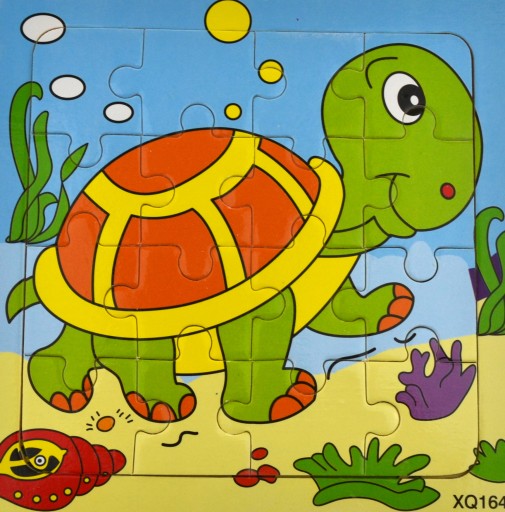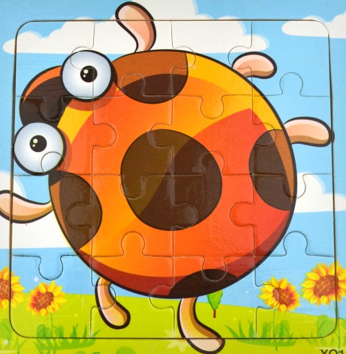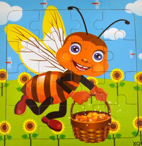 Edukacyjne puzzle drewniane 16 elementów pod układanką obrazek ułatwiający układanie puzzli